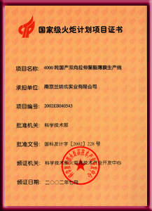Certificate of National Torch Plan Project